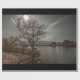 A tree by the edge of a lake, partially blocking the sun. Mountains can be seen past the far shore. HDR processing brings out additional detail and depth.