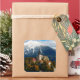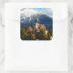 Photo sticker with the small Island with church surrounded by trees in fall colours in Lake Bled with in the background snow on the peaks of the Julian Alps in autumn in Slovenia.