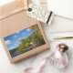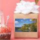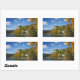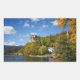 Rectangular photo sticker with Bled castle on a high cliff above Lake Bled, surrounded by trees with foliage in autumn colours in a beautiful fall landscape in Bled, Slovenia.