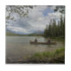 A photo of a couple in a canoe on the beautiful Honeymoon Lake in Alberta Canada.