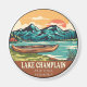 Lake Champlain hand drawn illustration with canoe, tents, and mountains in the background. Perfect for anyone who loves to visit Lake Champlain.