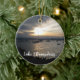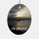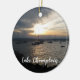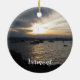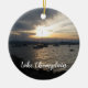 This special Christmas ornament features a beautiful photograph of the waterfront in Burlington, Vermont. As the sun sets over Lake Champlain, the sky is filled with shades of blue, gold and peach. The sailboats moored in the water are becoming mere silhouettes, while the mountains in the distance have become a deep pacific blue.