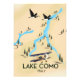 Beautiful Lake Como Italy Map Travel poster print art of the Famous Italian lake.