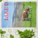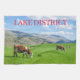 A beautiful photograph of cows grazing in the Lake District in England printed on a souvenir tea towel.
