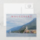 A panoramic view of the village of Malcesine on Lake Garda in Italy printed on a postcard.