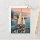Experience the tranquil beauty of Lake Garda at sunset with this postcard featuring a graceful sailing boat gliding across calm waters. The warm hues of the setting sun reflect on the lake’s surface, framed by majestic mountains in the distance. Perfect for lovers of serene landscapes, nautical scenes, and classic travel art.