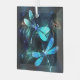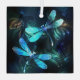 Two transparent, luminous, turquoise, artistically drawn dragonflies on night background with luminescent lake algae and fireflies. Glowing dragonfly.
