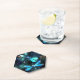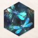 Two transparent, luminous, turquoise, artistically drawn dragonflies on night background with luminescent lake algae and fireflies. Glowing dragonfly.