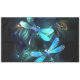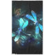 Two transparent, luminous, turquoise, artistically drawn dragonflies on night background with luminescent lake algae and fireflies. Glowing dragonfly.