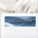 A unique set of address labels featuring a watercolor styled blue stained backdrop Your details lay in the centre in a dark navy and white colour matching the watercolor scheme.