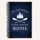 A beautiful, rustic themed mini recipe journal notebook, featuring your family name and "Lake House" or other desired text. This custom, unique design features a white silhouette of crossed boat oars and pine trees on a print of wood planks in rich blue colours. To see more designs like this, feel free to visit my store here at "Zazzle.com/Rustic_Charm". Thanks.
