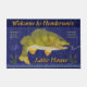 This cool, personalised doormat is perfect for your lake house. It shows an original drawing of a bass fish about to bite a hook. The text says, "Welcome to [Your Name] Lake House." The design is made in shades of blue, green, yellow and brown and includes a wave border along the bottom with cattails.