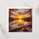 A beautiful blank notecard for a friend or family member with a pretty illustration of a sunrise in the morning over a lake while sitting on a back deck, drinking coffee.