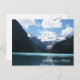 This photo features a stunning view of Lake Louise, Alberta taken in Banff National Park. The lake is a gorgeous blue with mountains framing it.