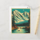 Send a little mountain magic with this vintage-inspired Lake Louise scene in Banff National Park. Turquoise alpine water, towering snowy peaks, and evergreen pines come together in a classic mid-century travel poster style with warm, nostalgic color. Perfect as a note card, thank you, or mini souvenir for hikers, travelers, and Canada lovers.