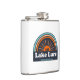 The flask itself is fine. It’s a cheap flask, obviously bought in bulk, however am prepared to overlook that. Given that it is a personalized item, I would have liked to have seen gift boxing instead of the generic packaging. Terrible printing, and/or quality. It’s a cheap, tacky vinyl. It is not cut straight and is also applied in a way that it is overhanging the bottom, causing the glue to catch on items and it will eventually roll and tear, damaging the wrap.