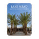 Palm trees line the walkway to the Lake Mead National Recreation Area Visitor Center in Boulder City, Nevada.
