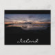 Postcard of a sunset over tranquil Lake Myvatn in northern Iceland at the arctic circle with black bars and the text: 'Iceland'.