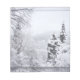 A photograph showing just a glimpse of the mountain lake through snow-covered fir trees. This landscape picture is digitally manipulated to look like a watercolor.