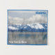 Looking east from Sandpoint, ID across Lake Pend Oreille (pond uh-ray) on a winter day; snow-covered mountains in the distance. Ice has formed at the shore and extends part way across the lake. Blues and greys are the predominate colours. Customisable text reading "IDAHO" also appears. And there is a place to add additional text.