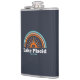 The flask itself is fine. It’s a cheap flask, obviously bought in bulk, however am prepared to overlook that. Given that it is a personalized item, I would have liked to have seen gift boxing instead of the generic packaging. Terrible printing, and/or quality. It’s a cheap, tacky vinyl. It is not cut straight and is also applied in a way that it is overhanging the bottom, causing the glue to catch on items and it will eventually roll and tear, damaging the wrap.