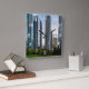 Wall clock featuring an urban landscape scene of a peaceful evening with some skyscrapers in downtown Chicago Illinois from Lake Shore East Park. This beautiful park is 4.6 acres and is located in the Chicago Loop.