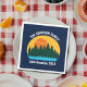 Beautiful family reunion lake vacation blue party napkins featuring the pretty blue waters under the forest of trees and cool orange sunset. Cute camping trip decor for your nature outing or wilderness group.