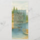 This program and menu design captures the charm of Lake Tahoe with pine trees, a serene lake, and rustic lodge elements. Perfect for alpine destination wedding receptions. Easily customisable to suit your event. AI-assisted watercolor textures enhance its beauty. Social media referrals may generate a small commission at no extra cost to you.