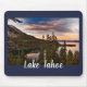 Colourful scenic photo of Lake Tahoe, California - Nevada. Dark blue background with white text overlay