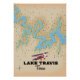Lake Travis Texas beautiful old vintage map travel poster.