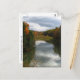 This postcard features Lake Treman which is situated at the top of Buttermilk Falls State Park, just south of Ithaca in the Finger Lakes Region of New York state. The water drops more than 600 feet over 10 separate waterfalls and eventually empties into Cayuga Lake. On this lovely autumn day, clouds and sun alternated to create a fascinating pattern in the sky which was reflected in the water. The woods surrounding the lake were ablaze with fall foliage colours of orange, yellow, red, gold and green. Golden shrubbery framed the foreground.