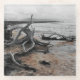 Lake Tyrrell is a salt lake located seven kilometres north of Sea Lake in Victoria, Australia. In this image taken at Lake Tyrrell, gnarled and weathered tree trunks lie strewn about a sandy shore, exhibiting evidence of natural forces at work. The contrasting colours of the muted sky and the vibrant sandy ground set a dramatic scene, further accentuating the desolate beauty of the landscape.