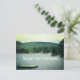 Lake home new address postcards. A secluded country lake with a small beach and green hills is the photo on the front of this moving announcement postcard. On the front, “our new address” text can be changed and add all information to the back.