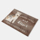 Funny beware of the wet kisser" Lakeland Terrier Dog door mat set on a rustic faux background. Visit our shop to view a large assortment of dog breads