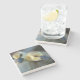 The coasters are gorgeous, a quality feel and heavy weight. They look like a precious archeological find. A rustic stone juxtaposed with a modern floral black and white print. I like the way the print goes slightly imperfect on the cut stone edges giving them a kind-of natural beauty.