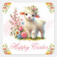 Lamb and Spring Flowers Happy Easter Square Sticker