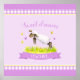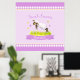Lamb skipping cute custom name purple baby nursery poster. Cute spring lamb whimsy watercolor painting of a baby sheep skipping in a flower meadow with purple and yellow butterflies. Personalize with your own name. Cute lamb on a purple sky background. Other matching cute sheep art items available. © Uniquely painted in watercolor and designed by Sarah Trett for www.mylittleeden.com