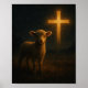 Lamb Under the Cross Christian Night Scene Art Poster