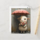 Lamb with Flowers and Umbrella in Rain Postcard
