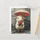 AI generated art of an adorable lamb standing in the rain with an umbrella and a arm full of roses