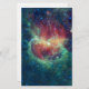 This infrared image from NASA's Wide-field Infrared Survey Explorer, or WISE, shows the Lambda Centauri nebula, a star-forming cloud in our Milky Way galaxy, also known as the Running Chicken nebula. The nebula, catalogued as IC 2944, is about 5,800 light-years from Earth and is home to a new cluster of stars born from the cloud nearly 8 million years ago. The hottest members of the cluster produce enough ultraviolet radiation and strong winds to convert the cloud into ions and excavate it. The ionised gas glows in visible light, but in infrared light we see the dust in the cloud warmed by the very same radiation. The red, glowing dust is the coolest material visible in this image and is composed of metallic dust grains. The greenish components in the image are warmer dust grains composed of smog-like materials. The large green ring-like structure near the middle of the image is some 77 light-years across and was formed when materials that created the stars in the clusters were blown back by the combined winds of the stars. The nebula gets its common name because in some visible light images it resembles a running chicken. It is also called the Lambda Centauri nebula because it appears to surround the bright star Lambda Centauri. Lambda Centauri is one of the brightest stars in the constellation Centaurus. The brightest stars in the sky are named based on the constellation they are in. For example, the brightest star in the constellation Centaurus is Alpha Centauri, the next brightest star in that constellation is Beta Centauri, and so forth. Lambda Centauri is therefore the 11th brightest star in the constellation Centaurus. It is not so bright in infrared light, however. In this WISE image, it appears as the dimmer, lower, and bluer of two bright stars in the upper right-hand corner of the image. It is a blue giant star about 410 light-years away. So, in fact, Lambda Centauri is much closer to Earth than IC 2944 and has nothing to do with the nebula at all. This image is a four-colour composite created by all four of WISE's infrared detectors. Colour is representational: blue and cyan represent infrared light observed at wavelengths of 3.4 and 4.6 microns, which is mostly light from stars. Green and red represent light observed at 12 and 22 microns, which is mostly light from warm dust, with red indicating temperatures lower than green.