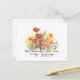 Postcard with inspirational quote scripture depicts a lovely flower garden art design with simple orange, pink and yellow flowers and green leaves, It features Bible Verse Lamentations 3:23, "His mercies are new every morning." The greeting, prayer can be personalised or deleted for a hand written message.