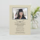 A wonderful graduation announcement on a sand coloured background with a black lamp of knowledge just beneath the double framed photo window. The lamp is trimmed on either side by laurel branches. The floating laurel strip below can be dragged to any location, made larger or smaller. Suitable for either gender or any degree.