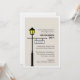 Elegant Lamp Post invitation featuring a lit lamp post with a hanging sign thereon, where text can be customised. Ideal for a housewarming party at your new home. © Morning 6