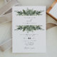 This wedding invitation features lush bohemian watercolor greenery and an elegant calligraphy font. This is the perfect invitation for your boho, garden, or winter wedding.