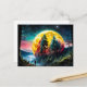 Large Colourful Moon Sets Down in the forest as a girl watches across a valley