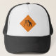 Surveyor at work icon on amber/yellow sign on a truckers hat.