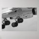 High definition monochrome closeup photograph of an airliner's landing gear right before touching down.