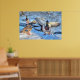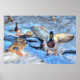 A photographic print of a handsome Mallard male making an elegant landing over a mostly frozen river in one of Ontario's coldest Winters ever recorded.