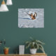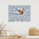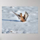 A photographic print of a pretty little Mallard female just after an elegant landing over a frozen river in one of Ontario's coldest Winters ever recorded.